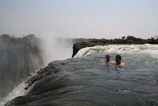 位于非洲東南部的維多利亞瀑布是世界上最大的瀑布,它有尼亞加拉大瀑布的兩倍高。盡管它的高度令人畏懼,但勇敢的人卻在瀑布頂端發(fā)現(xiàn)了一個天然泳池。在一年中的9月到12月是泳池水位最低的時候,游泳愛好者進入到魔鬼泳池水流最緩慢的區(qū)域盡情享受泉水的涼爽,瀑布從那里傾瀉到355英尺下的大峽谷中,可謂是驚險刺激。